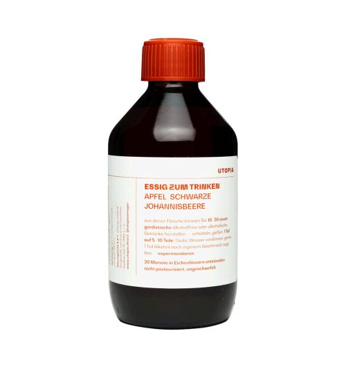 Fruchtig, intensiv und klar: Die Mazeration von schwarzer Johannisbeere verleiht diesem Apfeltrinkessig eine tiefdunkle Fruchtigkeit mit feiner Herbe und einer lebendigen, erfrischenden Säure. Der Apfelessig von UTOPIA wird zunächst spontan vergoren und anschließend über mehrere