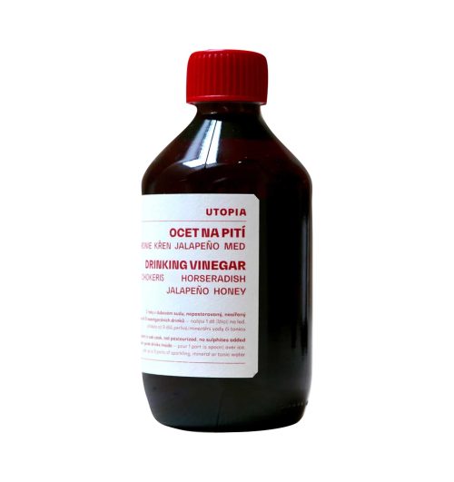 Fruchtig, würzig und ausgewogen: Die Mazeration von Apfel, Jalapeño und Meerrettich sowie die Zugabe von Honig verleihen diesem Apfeltrinkessig eine lebendige Frische, feine Schärfe und sanfte Wärme in harmonischer Balance. Der Apfelessig von UTOPIA wird