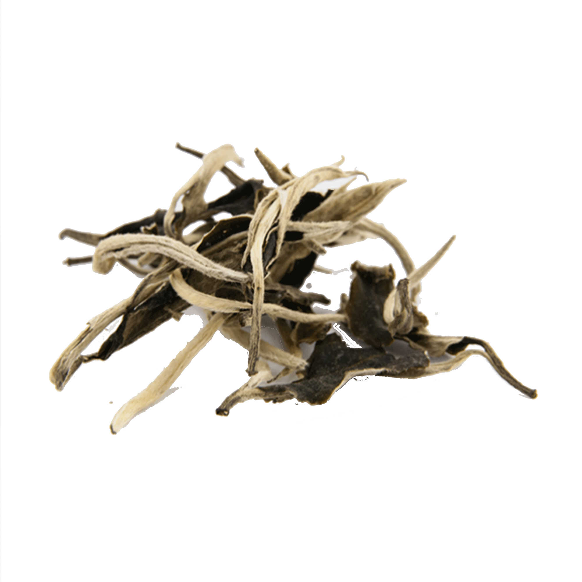 Der weiße Mond und sein Schatten! Die junge Blattknospe und das erste Blatt werden gepflückt und ohne weitere Verarbeitung getrocknet. Dabei symbolisiert die weiße Knospe in ihrer leicht gebogenen Sichel den Mond und das einseitig fast schwarze Blatt dahinter seinen Schatten.